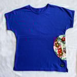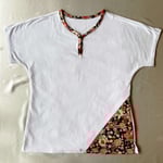 シンプルなTシャツに鮮やかなちりめんの和柄が映えるおしゃれで上質な逸品。