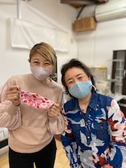 淡いピンクの表地の裏には、とてもキュートな唇柄をあしらった生地を使ったオリジナルマスク。ユーチューバーとして大人気の吉田ちかさんが手がけたオリジナルマスクです。